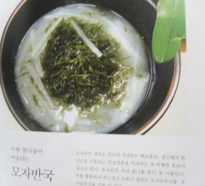 제주연안에서 자생하는 해조류인 모자반과 무와 콩나물로 끊인 모자반국은 일반인들은 아마도 거의 그 맛을 모를 것이다.