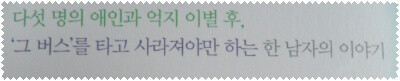 "나는 앞으로 2주일 뒤면 '그 버스'를 타야 한다. '그 버스'가 어디로 가는지, 어떤 목적을 갖고 있는지, 왜 사람을 태우는지 아무 것도 가르쳐 주지 않았지만 마유미와 마유미 동료들의 이야기를 들은 바로는 평화로운 환경하고는 먼 곳으로 가는 게 분명했다. " (p100)