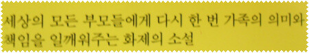 이 책에는 자신의 자녀가 그런 일을 당했다면 너무도 끔찍스럽고 감당하기 힘들 이야기들을 복잡한 복선을 깔아 가면서 이야기를 전개하는 미스터리 소설 형태를 띤 가족 소설이었다.