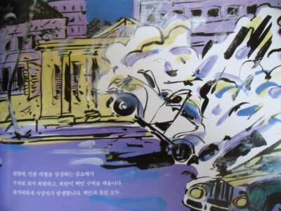 특히, 이 책의 그림들은 아프리카의 이미지와도 어울리게 화려한  색과 굵고 강한 검정 선을 사용하고 있다. 이것은 남아프리카 공화국의 흑인들이 겪었을 고통의 순간들을 강렬한 색과 터치이기도 한 것이다.