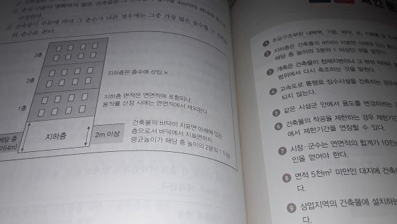 p306에는 다시 그림을 통해 지표면, 층수(산입) 등의 건축법 개념이 구체적으로 어떻게 적용되는지 보여 줍니다. 이 정도 그림은 다른 교재들에서도 대개는 제공합니다만 이 에듀윌 기초서의 특징이라고 하면 건축법 파트에선 정말로 생기초만 수험생들에게 확실히 가르치고 넘어간다는 점? 저는 개인적으로 그리 느꼈습니다. 기초서를 보는 독자는 처음부터 너무 큰 부담을 받아서는 안 된다는 기초서 자체의 목적에 충실한 태도라고 생각합니다.