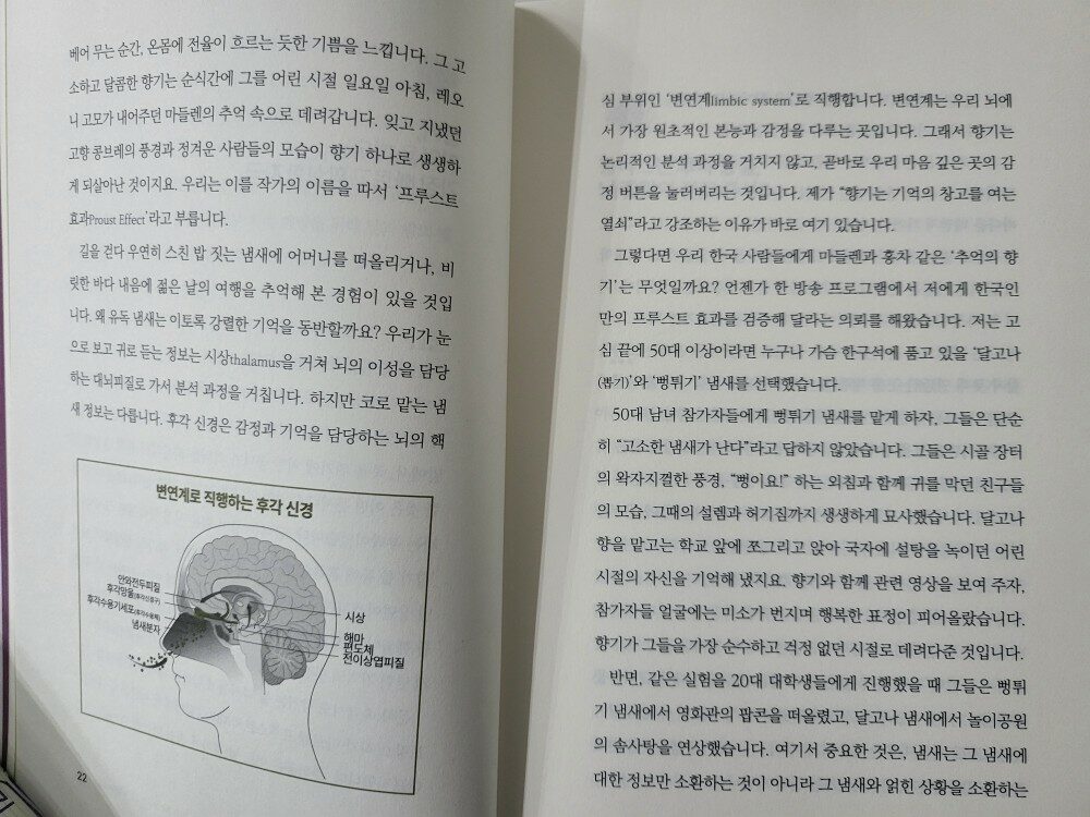 저자는 자신의 전공 분야인 ‘후각’의 중요성을 특히 강조한다. 후각은 우리 뇌에서 기억과 감정을 담당하는 변연계와 가장 직접적으로 연결되어 있다. 치매 환자들이 인지 기능의 장애를 겪기 수년 전부터 냄새를 맡는 기능에 이상을 보인다는 사실은 매우 충격적이다. 하지만 이는 역으로 후각을 자극하는 행위가 뇌를 활성화하는 강력한 수단이 될 수 있음을 의미한다. 매일 마시는 커피의 향을 깊게 들이마시고, 계절마다 변하는 흙과 꽃의 냄새에 집중하는 사소한 습관이 뇌의 퇴화를 막는 훌륭한 방패가 된다는 대목은 무척 인상적이다.