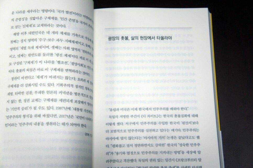 안 그래도 요즘 정치를 보면 엄청 피로하다. 관심을 가지고 보기에도 민망한 별의별 시시콜콜한 일들이 다 일어나고 있다. 이게 뭔가 싶고 말이다. 그런데 생각해 보니 예전의 어느 순간과 겹쳐진다. 그래서 지긋지긋하다며 정치를 외면하다가 어땠는가 말이다. 나는 길을 잃고 있었다. 그리고 그것조차 모르고 있던 순간, 이 책이 내 마음을 다잡도록 도움의 손길을 건넨 것이다.