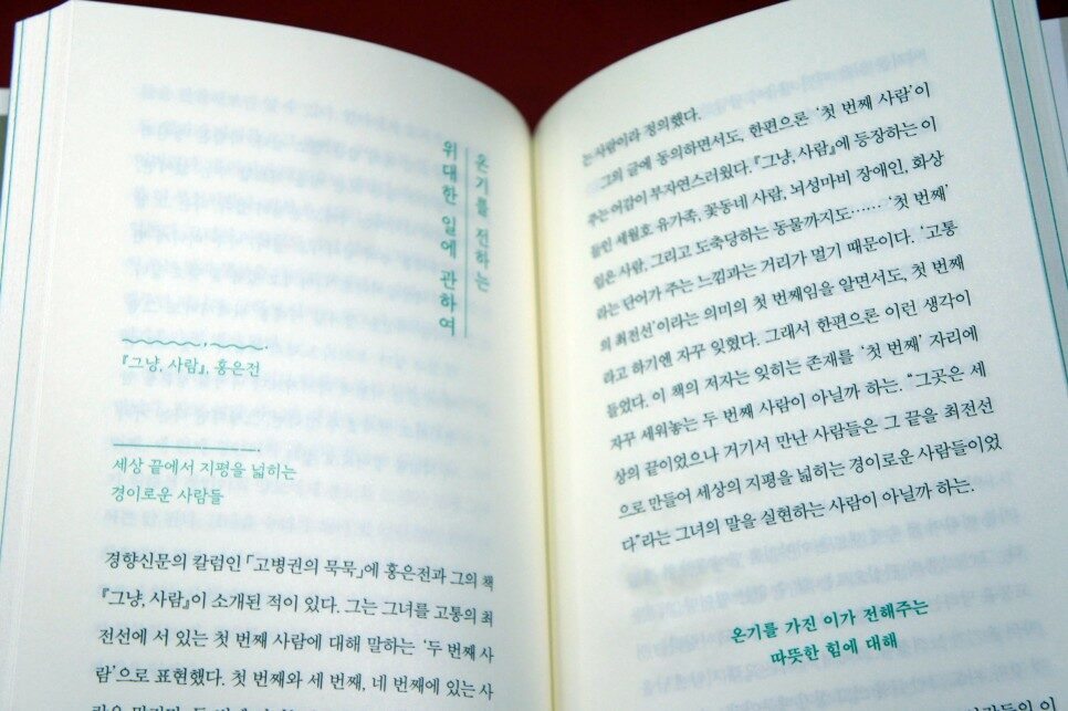 이 책을 다 읽고 나면, 자신과 타인에게 이전과는 다른 질문을 하게 될 것이다. 더 나은 질문을 함으로써 더 나은 답을 얻을 것이다. 올바른 질문은 세상을 보는 관점과 그 안에서 당신의 자리, 더 나아가 주변 사람을 보는 시야를 넓혀줄 것이다. 그리고 긍정적이고, 현실적이며, 창의적인 사고방식으로 상황에 접근해서 인생의 새로운 장을 열도록 해줄 것이다. (23쪽)