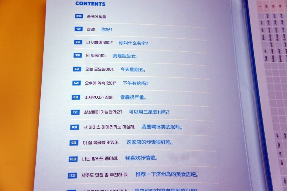 중국어 발음을 시작으로, 1과부터 12과까지 있고, 부록이 세 가지가 있다. 앞부분은 중국어 공부를 좀 한 사람이라면, 중국어 좀 해보라고 하면 말하는 그 문장들이다. 안녕, 이름이 뭐니 등등 오랜만에 보니 은근 들뜬다. 특히 오늘 무슨 요일인지 이야기하는 부분은 학창 시절에도 그 정도부터가 중국어 좀 하는 느낌이 들어서 아이들이 막 성조 넣고 떠들면서 연습하던 장면이 새록새록 떠오른다. 그 시절 그 친구들은 잘 지내고 있는지 궁금해진다.