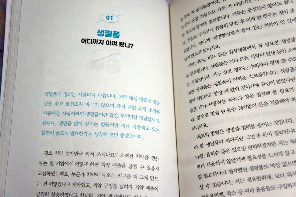 이 책은 총 3장으로 구성된다. 1장 '경제공부'에는 돈, 경제 상식, 금융 지식, 빚, 보험, 주식, 장기 투자, 부동산, 금리, 노후 설계, 2장'절약공부'에는 생필품, 의복, 주방용품, 공공요금, 음료 여성용품, 화장품, 미디어, 살림, 쇼핑, 미니멀리즘, 3장 '마음공부'에는 시간의 속도 늦추기, 일상의 반짝이는 순간들, 인맥도 간소함이 필요하다, 자존감이 올라가면 소비는 줄어든다, 영혼에게 밥은 주고 계신가요?, 산책은 공짜로 즐기는 최고의 여행, 선은 돌고 돌아 내게로 온다, 취미는 장비발이 아닌데요, 죽을 때 후회하는 한 가지, 긍정의 말은 나를 살립니다 등의 내용이 담겨 있다.