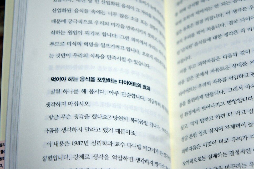 그동안 다이어트에 하도 디어서 곧바로 서트푸드 다이어트에 돌입하자고 생각하기에는 주저하게 되지만, 일단 서트푸드 챙겨 먹기 정도는 하겠다고 마음먹는 데에 어려움은 없었다. 꽤나 괜찮은 방법이라는 생각이 든다. 이 책을 읽고 자신만의 방법으로 서트푸드를 섭취하며 건강한 다이어트에 돌입할 수 있을 것이다.