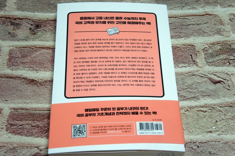 국어 과목에는 6개의 하위 영역(화법, 작문, 언어, 독서, 문학, 매체)이 존재합니다. 교과서 및 교육과정을 분석하고, 수능뿐만 아니라 공무원, 경찰대, 사관학교 등 다양한 국어 시험 문제를 참고하여 국어의 핵심 개념들을 최대한 쉬운 말로 풀어서 제시했습니다. 또한 개념을 배우고 난 뒤에는 OX퀴즈를 통해 학습한 내용을 확인할 수 있게 구성하였습니다. (지은이의 말 중에서)