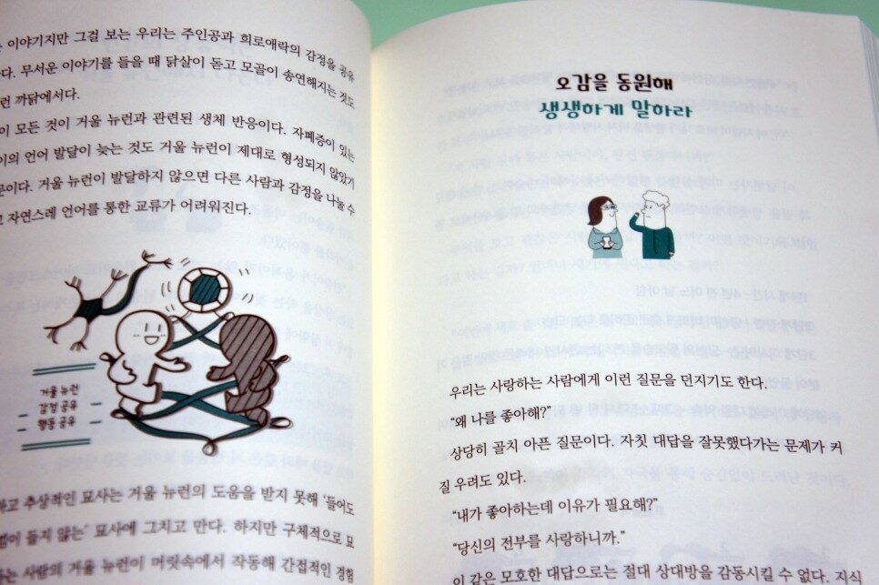 이렇게 여덟 가지 말하기 법칙을 적어놓고 보니 이 책이 많이 어렵고 딱딱할 거라는 선입견이 생길지도 모르겠다. 하지만 이 책은 부드럽게 슬슬 풀어나가서 부담 없이 쏙쏙 들어오게 하는 솜씨를 부린다. 특히 물 흐르듯 흘러가는 이야기 중에 나에게 필요할 법한 것을 착착 건져내는 재미가 있다. 읽다 보면 묘하게 설득되며 마음에 훅 들어오는 부분이 있다.