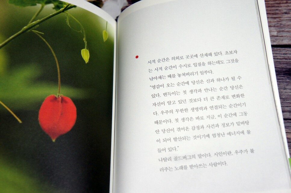 나탈리 골드버그의 말이다. 시인이란, 우주가 불러주는 노래를 받아쓰는 사람이다.