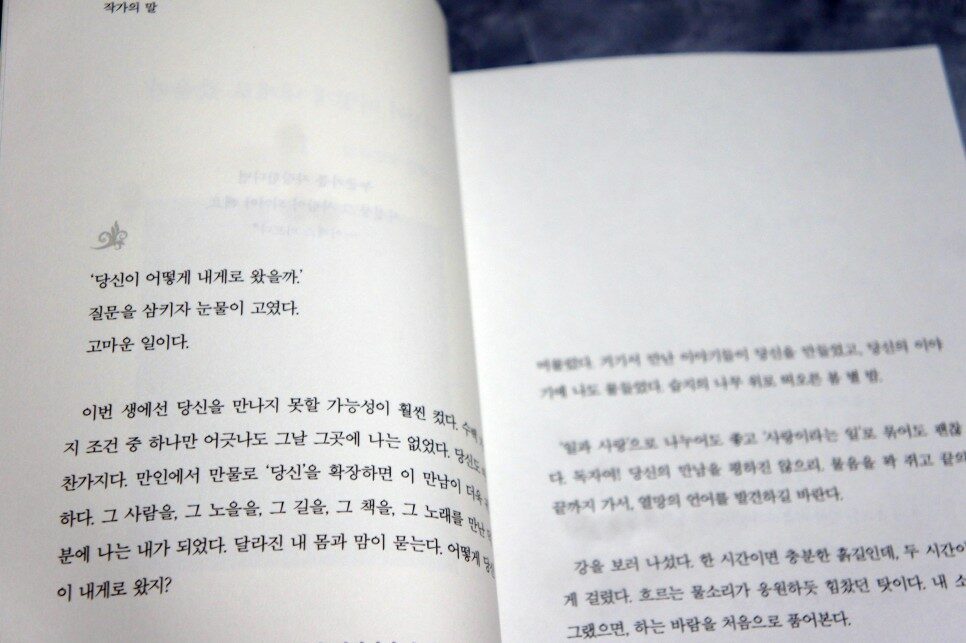 이 책에서 '작가의 말'은 이렇게 시작된다. 그리고 나는 어쩌면 이 문장부터 마음에 담으며 사색에 잠겼다. 이렇게 바라보면 세상에 기적 아닌 것은 아무것도 없다. 모든 것이 소중하다. 당장 내 마음속에서도 이 소설이 시작되기도 전에 잔잔한 바람이 불어 마음을 일깨운다. 그러면 어떤 내용이 펼쳐질지 어디 한번 봐야겠다는 생각에 속도를 붙여 이 소설을 읽어나간다.