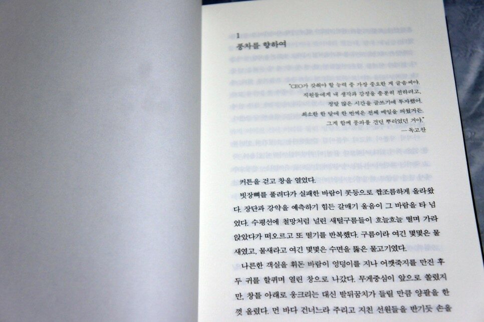 사랑인 줄 알았는데 이별이다. 그런 시작이다. 이별을 해야 새로운 만남이 있을 수 있으니까… 그래서일까. 나에게 집중력을 발휘하도록 한 것은 독고찬과의 이별 장면부터이다. 무언가 새로운 일이 펼쳐질 것 같은 예감이 들어서랄까. 평범한 이야기의 특별함을 기대하며 이 책을 계속 읽어나간다. 그리고 잘 기억해두자. 영화나 드라마에서도 그렇듯이, 그냥 스쳐가기만 하는 장면은 없다.