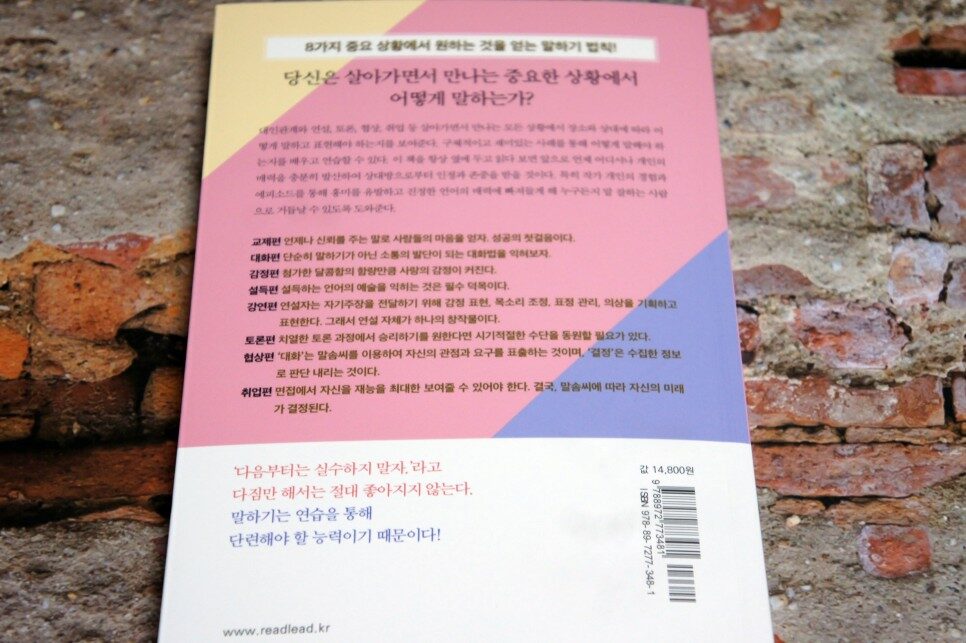 이 책을 읽다 보면 말하기는 타고난 재능이라기보다는 배우고 연습해서 능력을 끌어올릴 수 있다는 것을 알 수 있다. 더 이상 '난 왜 말을 이렇게 잘 못할까'라며 좌절하거나 머뭇거리지 말고, 어떻게 하면 잘할 수 있을지 연습해야 할 것이다. '말하기도 연습해야 한다'라는 말을 명심하며 이 책을 집중해서 읽어볼 필요가 있는 것이다.