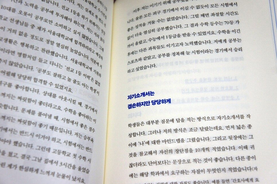 부록으로 주어지는 '공부일기'도 자신만의 계획을 세우고 목표를 향해 추진력 있게 달성해나가는 데에 도움이 될 것이다. 직접 채워나가며 자신만의 학습 노하우를 만들어나갈 것이다. 이 책을 읽어보니 명문대생들의 공부법과 입시 전략의 정수를 잘 추려 담아낸 책이어서 신선한 자극이 되리라 생각된다. 대학입시 준비 중인 수험생이라면 이 책의 도움을 받아보기를 권한다.