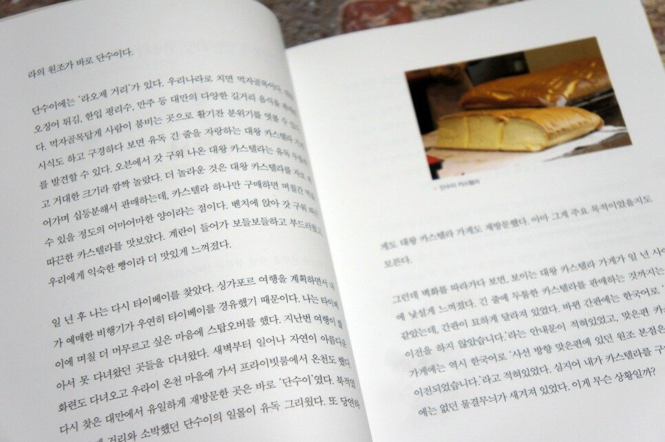 빛바랜 연초록빛 벽도 두리안을 상징하는 것 같았던 작고 소박했던 빵집. 가게 내부로 들어가자 우리나라의 옛날 빵집을 보는 듯한 기본적인 메뉴들에 나도 모르게 미소 지었다. 나는 문제의 '두리안 오믈렛'을 집었다. 이 빵집의 시그니처는 두리안 스위스 롤과 두리안 오믈렛으로 모두 공포의 '두리안'을 넣은 크림으로 만든 빵이다. (239쪽)