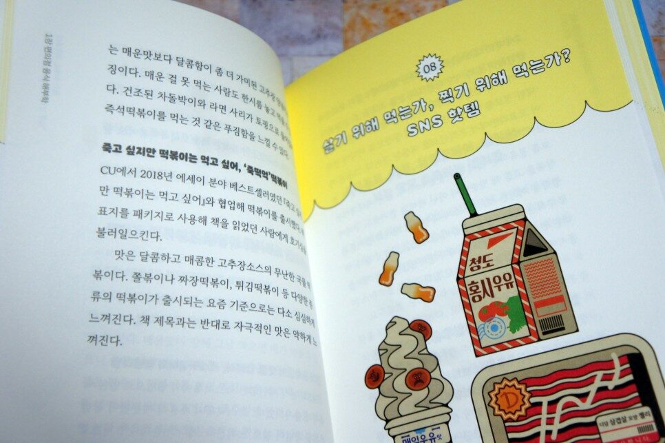 CU에서 출시한 '여수 쑥우유'와 '청도 홍시우유'는 패키지만 봐도 이런 우유가 과연 맛이 있을까 고민하게 하는 이색적인 조합이지만 사람들은 오로지 재미를 위해 상품을 사서 인증샷을 올렸다. 먹어보니 맛은 의외로 괜찮은 편. 쑥우유는 쑥의 향긋함과 설탕의 달콤한 맛이 잘 어울린다. 쑥의 향이 강한 것이 어르신들이 좋아할 만하다. 홍시우유는 홍시보다는 메로나의 맛이 좀 더 강한 편이다. (67쪽)