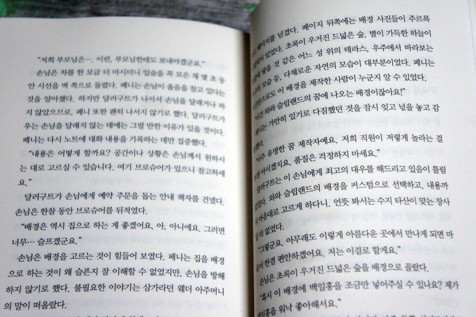 이 소설에서는 페니가 달러구트 꿈 백화점에 입사하여 벌어지는 일을 그려낸다. 읽는 내내 어떻게 이런 생각을 해냈는지 신기했다. 꿈과 모험의 세계에 초대받은 느낌으로 읽은 책이다. 이 책을 읽는 시간 동안 다른 어떤 방해도 상관없이 몰입해서 읽어나갔다. 그렇게 된다.