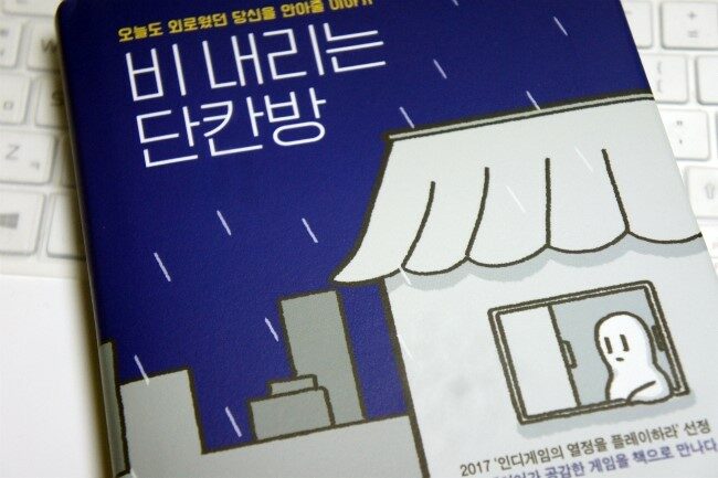 책을 선택하는 이유에는 여러 가지가 있다. 제목, 관심 분야, 호기심… . 이 책은 호기심으로 선택했다. 지금까지의 비슷한 느낌과는 다른 무엇을 만나고 싶었으니, 이 책에 대한 설명을 보고 나서 호기심이 발동했다. 이 책은 2017 '인디게임의 열정을 플레이하라' 선정 80만 플레이어가 공감한 게임을 책으로 만난다는 콘셉트다. 무언가 독특한 느낌의 책이라는 기대감에 이 책『비 내리는 단칸방』을 집어들었다.
