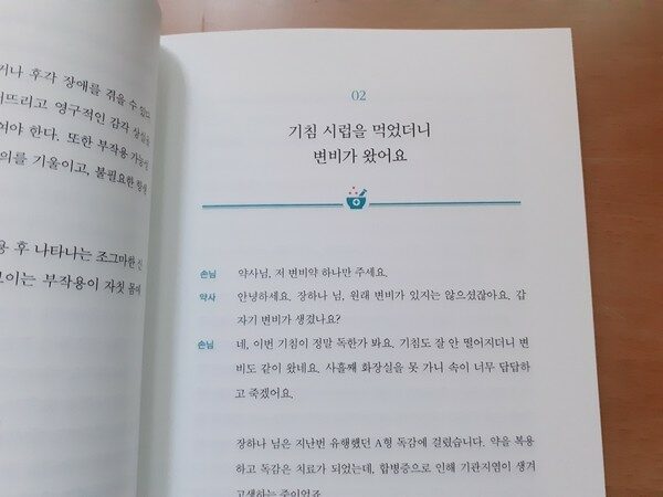 아프면 꼭 병원을 가서 병명을 확인하거나 약을 먹어서라도 건강한 상태로 컨디션을 유지해야 한다고 생각한다. 그런데 병원 처방전 없이 약국에서 사 먹을 수 있는 약이라고 하더라도 제대로 알고 먹어야 한다. 분명 두통약이라고 먹었는데 배가 아플 수도 있다. <아스피린과 쌍화탕>은 그런 약의 효능과 부작용에 대해 알려준다. 약은 그 종류에 따라 먹고 속이 불편할 수도 있고, 어지럽고 잠이 오거나, 두드러기가 날 수도 있다. 이뿐만 아니라 약을 먹고 뼈가 아프기도 하고 가슴이 두근거리는 심혈관 관련 증상이 나타나기도 하고 알레르기나 중이염과 같은 증상이 나타나기도 한다. 하지만 약은 제대로 알고 먹으면 건강을 되찾아줄 수 있다.