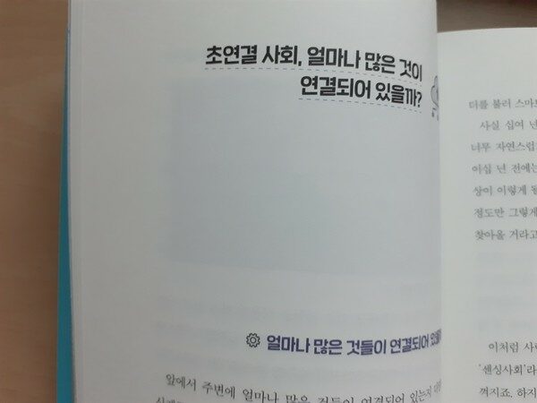 지금도 우리는 초연결 사회에 살고 있지만 미래에는 이 초연결 사회가 더욱 발전할 것이다. 모든 것이 연결되어 있는 센싱 사회는 인터넷의 발달로 적용 분야가 확대되고 일상의 사물들이 네트워크에 연결되어 데이터를 주고받을 수 있게 되었다. 모든 것이 연결된 초연결 사회는 시간, 장소, 대상의 제약이 없다는 장점이 있다. 이렇게 우리는 스마트폰 하나로 아주 많은 일을 할 수 있다.