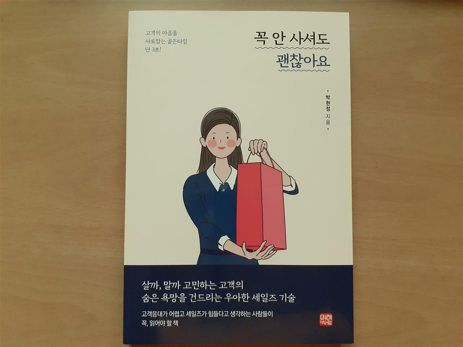 '세일즈'라는 것은 물건을 판다는 의미이다. 그런데 고객에게 '꼭 안 사셔도 괜찮아요'라고 말할 수 있을까? 세일즈를 하는 입장에서는 가장 하기 싫은 말이거나 본심이 아닌 말일 수도 있다. 하지만 고객을 사로잡을 수 있는 방법을 <꼭 안사셔도 괜찮아요>에서 알아본다. 우선 고객이 만족할 수 있는 서비스를 하기 위해선 몇 가지를 알아야 한다. 첫째, 내가 좋아한다고 해서 상대도 좋아할 것이라는 생각을 버려야 한다. 이는 내 생각이 옳다, 정답이다라는 편향된 생각을 버리고 유연한 사고를 할 수 있어야 한다. 둘째, 고객에게 항상 관심을 가지는 것이다. 상대에 대한 관심이 줄어들면 자연스레 권태기가 오듯 고객에 대한 관심은 중요하다. 셋째, 궁금한 것이 있다면 질문하면 된다. 혹시 물어보는 것이 실례가 된다고 생각해 질문하지 않을 수도 있지만 물어봐 주지 않아 말하지 못하는 경우가 더 많다는 것이다.
