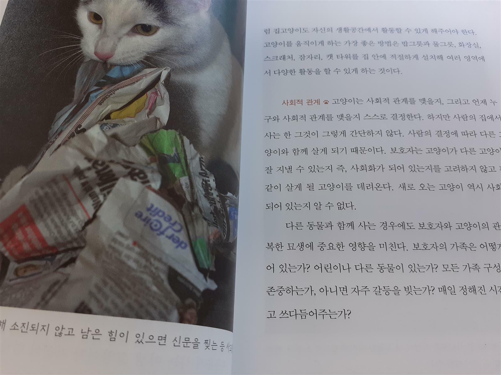 <고양이는 왜 이러는 걸까?>의 표지를 보면 고양이는 정말 예쁘고 귀엽고 한번쯤 키워보고 싶은 애완묘처럼 보인다. 그런데 그런 단순한 생각으로 반려동물을 키우면 절대 안된다. 반려동물과 함께 생활하기 위해 반려동물에 관한 공부를 해야 한다. <고양이는 왜 이러는 걸까?>에서는 반려묘로의 고양이에 대한 여러 가지 습성을 알 수 있다. 우선 고양이의 타고난 행동을 이해해야 한다. 고양이는 고유한 성격을 가지고 있고 성격은 유전적 요소뿐 아니라 생활환경에 따라 형성된다. 아기 고양이는 생후 1개월 내에 삶에 필요한 것을 모두 배워야 한다. 야생 고양이는 5주째부터 어미가 먹이를 가져와 사냥 기술을 가르치기 때문이다. 고양이도 사회화 시기가 있는데 놀이를 통해 많이 배운다. 놀이를 통해 다른 고양이와 어울리는 경험을 쌓고 공격성을 통제하는 법을 배운다. 그리고 보호자의 성격과 생활 방식이 의식적이든 무의식적이든 함께 사는 고양이의 행동에 영향을 준다.