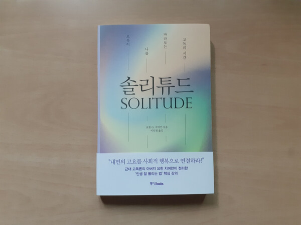 '솔리튜드(Solitude)'는 고독이라는 의미다. 현대사회를 잘 설명하는 키워드 중에 하나가 '혼자하기'라고 할 수 있다. 많은 사람들이 뭐든 혼자하는 일들이 많아졌다. 혼자 여행하고, 혼자 밥 먹고, 혼자 영화 보고, 혼자 술 먹고, 혼자 운동하는 등 뭐든 혼자할 수 있다. 이 '혼자'의 의미에서 외로움이 아닌 고독으로 받아들이는 경향이 생겨났다고 본다. 예전엔 누군가 혼자 밥을 먹거나 혼자 앉아 있는 것만으로도 이상하게 여겼지만 현대는 혼자를 즐기는 문화가 되었다. 외로움과 고독을 구별해야 한다. 실제로 고독은 그 달콤함과 혜택을 누리지 못하는 자들에 의해 종교와 마찬가지로 음울하고 불쾌한 색채로 표현되고 있다. 고독 역시 인간이 느낄 수 있는 감정으로 자연히 많은 이들이 행복이라는 범주에서 고독을 제외해 버린다. 고독을 외로움과 동일하다고 보기 때문일 것이다. 고독이 유익한 과정이 되려면 정신력과 감수성이 동등하게 작용하여 상호 간 조절이 가능해야 한다.