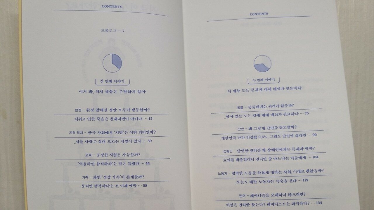 그리하여 이책에서는 역시 세상은 무탈하지않아, 이세상 모든 존재에 대해 예의가 필요하다, 불평등을 없애는 유일한 방법 끝까지 의심하기 등 세가지 종류의 이야기를 226쪽에 걸쳐 잘설명해주셨다.