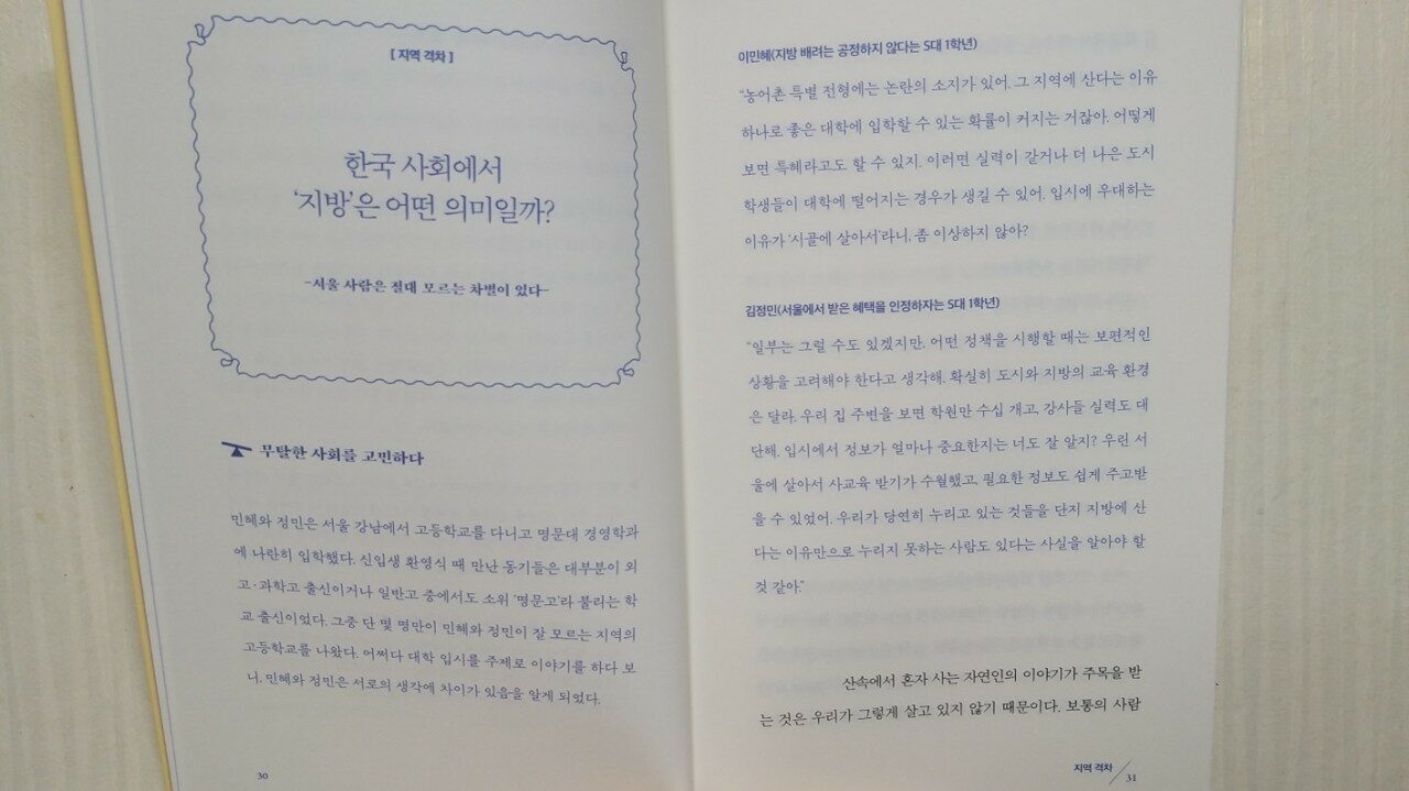 글고, 이책을 읽고나니 지방도 서울못지않게 발전되야하고 노동자, 장애인분들께서도 평등하게 살 수 있는 사회가 되야겠다는걸 절실히 깨닫게되었다.
