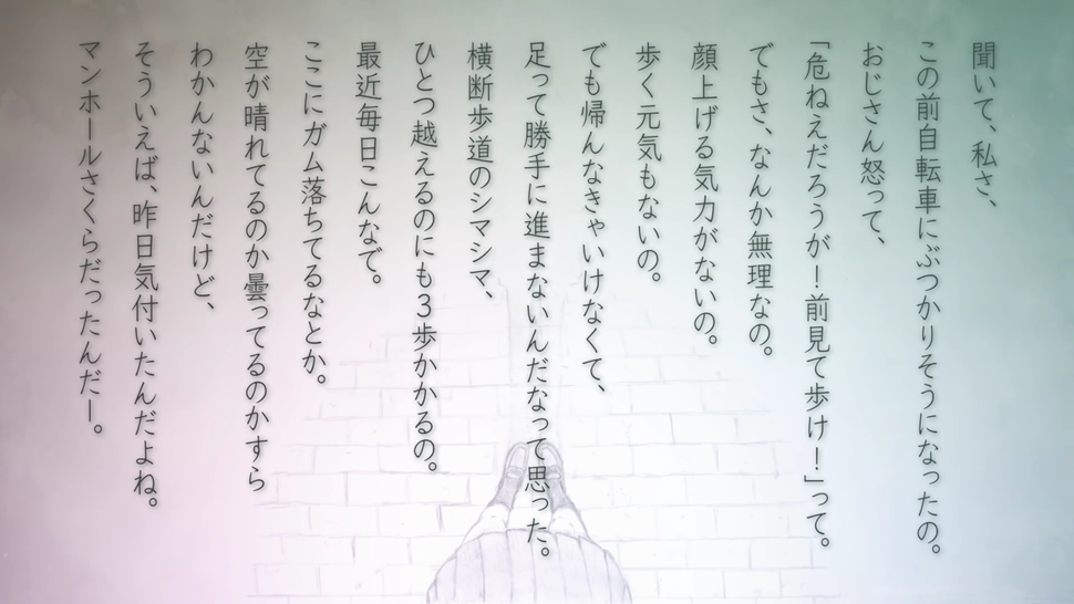 앞에 세 곡은 들어봐도 괜찮고 안 들어봐도 괜찮다. 관심 있으면 한번쯤 들어보길. 내가 말하고 싶은 노래는 바로 앞에서 말한 <生きてるだけでえらいよ(살아 있기만 해도 대단해)>다. 노랫말 찾아서 한국말로 옮겨봤다. 여기 나오는 건 고등학생 같기도 하다. 중학생이나 초등학생일 수도 있을까. 꼭 학생만 말하지 않겠지. 학교가 아닌 다른 데서도 옆에 옆에 사람이 자기 말을 들어줄지도 모르니 힘들면 말해도 되지 않을까. 그렇게 말하는 것만으로도 괜찮아지기는 할 거다. 난 말하기보다 책 보고 글을 쓰지만. 글을 쓰는 것도 말하는 것과 다르지 않다. 말은 잘 못하니 글이라도 쓰는 거구나. 사람은 그냥 살기만 해도 괜찮다. 나도 그런 거 썼는데.