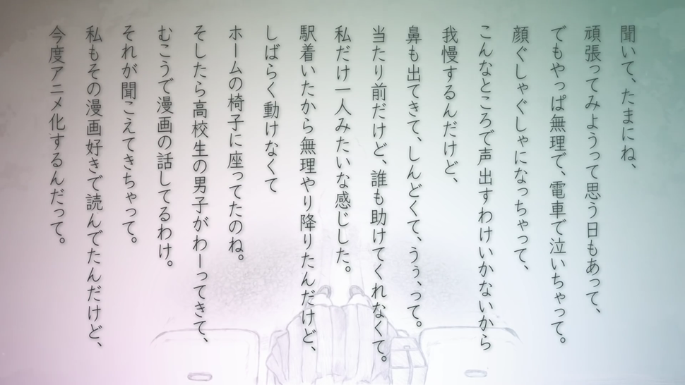 聞いて、たまにね、頑張ってみようって思う日もあって、でもやっぱ無理で、電車で泣いちゃって。