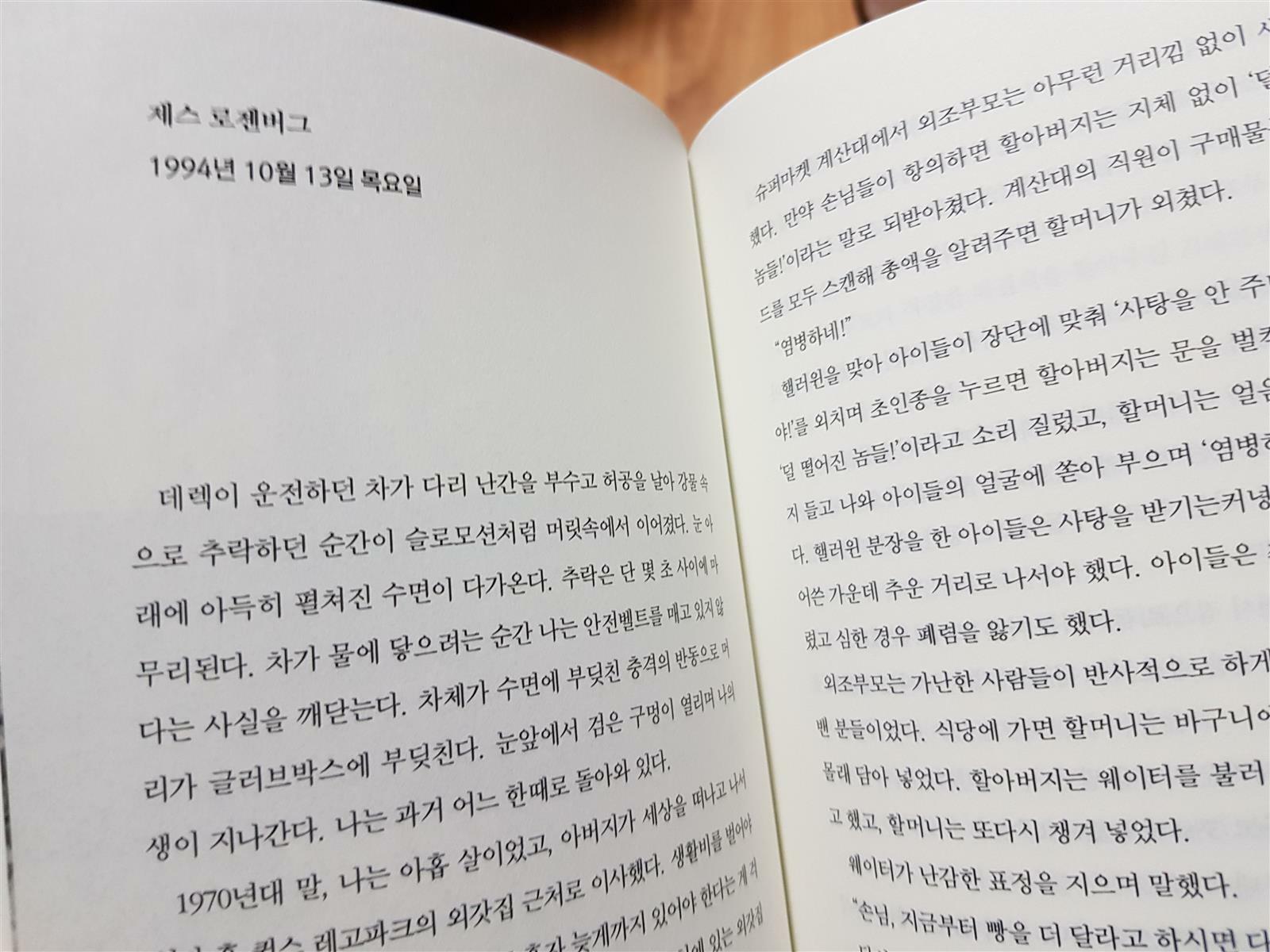 결국 사건의 진실에 점점 가까워지면서 제스와 데렉, 애나, 다코타등의 이야기가 풀어지고 그들의 아픈 상처가 되었던 딱정이가 떨어지고 아물어 이제는 추억의 서랍속에 묻어 둘 수 있는 과거가 된다. 이것이 미스터리 추리 소설인지 심리치유 소설인지 다소 헷갈리기도 하지만 살인 사건에 집중할뿐 아니라 사람들의 상처까지 들여다 보고 치유하는 작가라는 사실에 그저 놀랄 뿐!