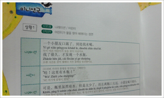 책속에 있는 그림과 우리말 해설과 중국어 자막이 함께 진행이 되고 있어
