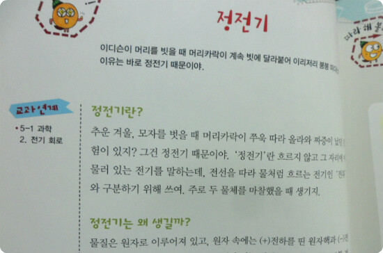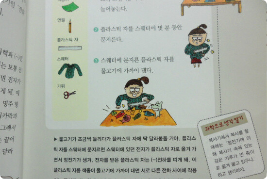 바로 옆 페이지에는 쉽게 따라할 수 있는 정전기 실험을 실어 놓아 눈으로 직접 확인할수 있습니다.