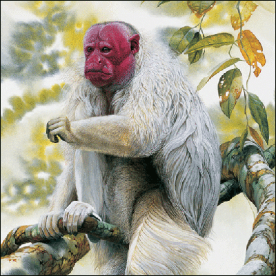 | ▲ 흰우카리, White uakari-가장 경이로운 동물 중 하나다. 얼굴도 귀도 인간을 닮았고 발까지 이어지는 하얀 털은 하얀 옷을 입은 사람과 비슷하다. 살아가는 모든 면이 젊잖고 신중하다. |