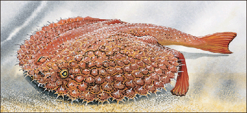 | ▲ 빨강부치,Starry batfish는 보통 물고기처럼 헤엄도 칠 수 있지만 다리처럼 생긴 4개의 아가미로 걸어다니는 딱딱한 물고기다. |