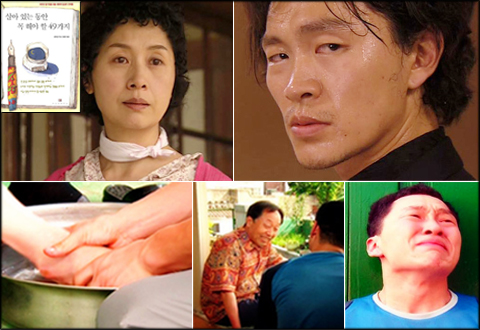 <살아 있는 동안 꼭 해야 할 49가지>(위즈덤하우스. 2004)의 `부모님 발 닦아 드리기` 일화에 등장하는 청년 역시 어머니의 발을 닦다 목 뒤로 울음을 넘긴다. 시멘트처럼 딱딱하게 굳어 있는 어머니의 발은 사람의 피부라고는 볼 수 없을 정도였기 때문이다. 책은 부모님의 또 다른 이름이 `희생`이라고 말한다.