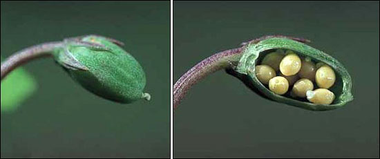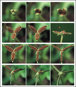 | ▲ 여문 제비꽃씨앗이 터져 퍼져 나가는 이 모습은 2시간동안에 걸친 연속촬영. 제비꽃은 자체의 힘으로 2~5미터까지 날아간다. |