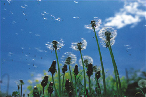 | ▲ 춤을 추듯이 하늘높이 날아오르는 낙하산 모양의 서양민들레 씨앗들 |