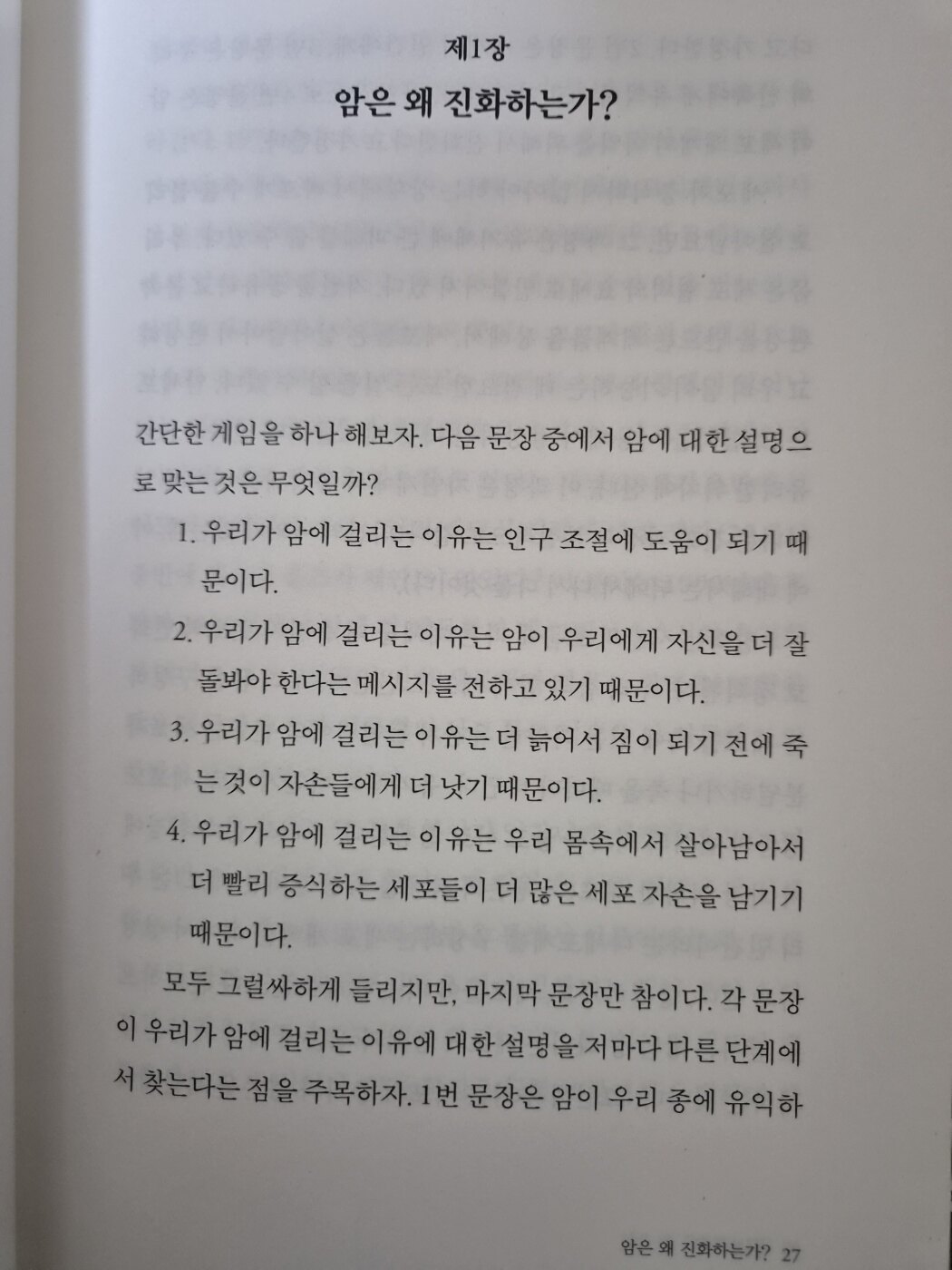다음 본격적인 1장 '암은 왜 진화하는가?'부터 천천히 읽어보았다.