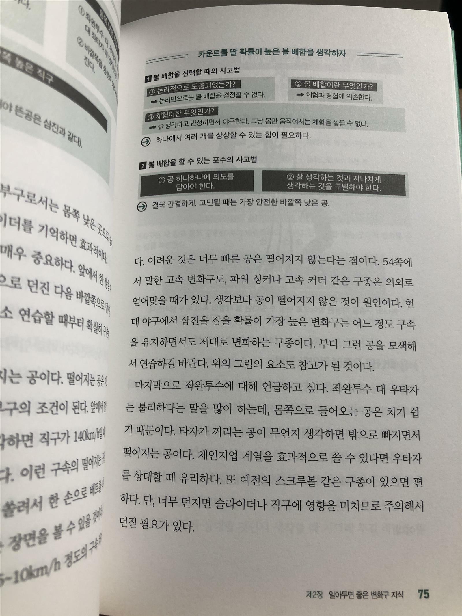 특히 4장의 최신 연구에 따른 변화구 습득 방법이 재미 있었는데, 말 그대로 과학적인 지식과 정보를 기반으로 변화구를 던지는 법을 배울 수 있다