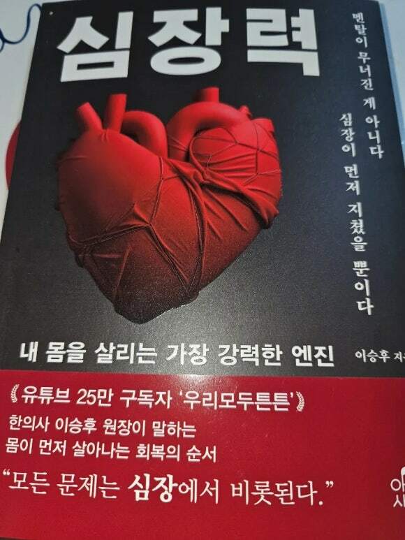 내가 병을 오랫동안 앓고 9가지 합병증이 있었는데 병원에서는 잘 모르는 병을 건강책을 읽으면서 많이 알게 되고 거의 고쳤다. 이 책을 읽어보면 그때 왜 그랬는지 알게 되는 원인을 찾을까라는 기대감으로 책을 읽어보고 싶었다. 저자는 이승후이다. 멘탈이 무너진다는 얘기를 많이 하는데 심장이 먼저 지쳤을 뿐이다. 자기 몸을 살리는 가장 강력한 엔진이 심장이고 모든 문제는 심장에서 비롯된다.