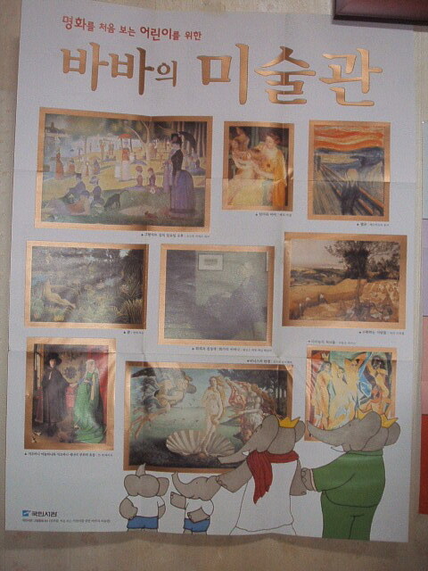 가끔 아이들과 미술관에 가서 그림을 관람할 때가 있는데 아이들은 자신이 보고 있는 그림에 대해 이런 저런 말을 하고 싶어한다. 그러나 다른 관람객들이 그림을 감상하는데 방해가 될까 하여 아이에게 목소리를 낮추라고 주의를 주며 몇 마디씩만 소근거리고 마는지라 책에서 아기 코끼리들이 그림을 보며 자신의 느낌이나 생각을 말하는 모습이 무척 부럽다. 거기다 가서 쉬기도 하고 공부도 하고, 화가를 만나거나 그림을 그리는 모습을 볼 수도 있는 미술관이라니, 사랑 받을 만한 곳이지 않은가...